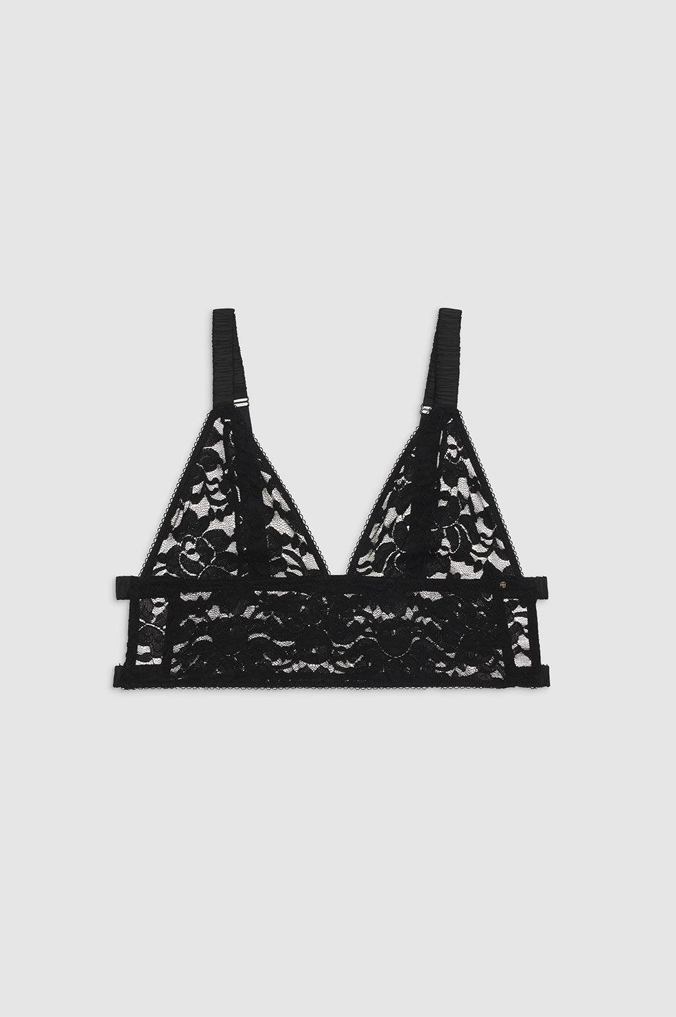The Violet Bralette is a pullover lace bralette with thick, satin-encased adjustable straps. It’s crafted in a slightly sheer, floral stretch-lace fabrication with boning at the sides for added support and structure. Cutout panels at each side make for an open, alluring construction. Finished with a small stitched ANINE BING monogram charm.