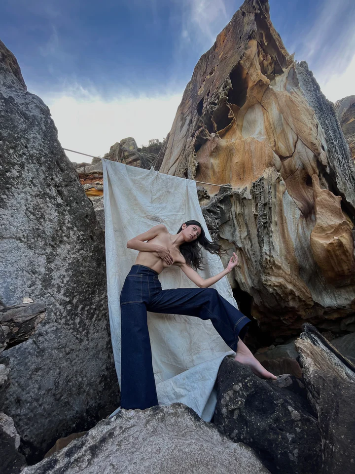 Each Rossini jean is made in Outland Denimâs vertically integrated production and finishing facility in Cambodia, which was founded to offer holistic support, training and employment to young women who have experienced exploitation.