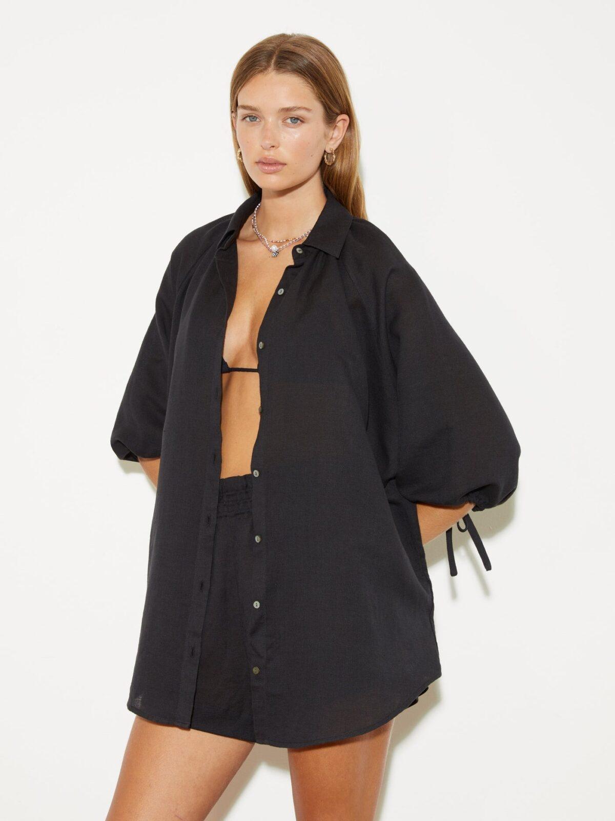 The beach essential that can be styled several ways, with shorts, over swim or with your favourite vintage denim. Relaxed fit with collar, shell buttons and ties at wrist for adjustability.