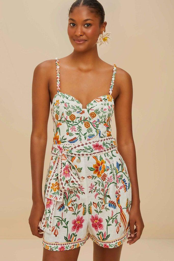 FARM RIO Off-white picnic flowers euroflax™ premium linen romper Regular price
