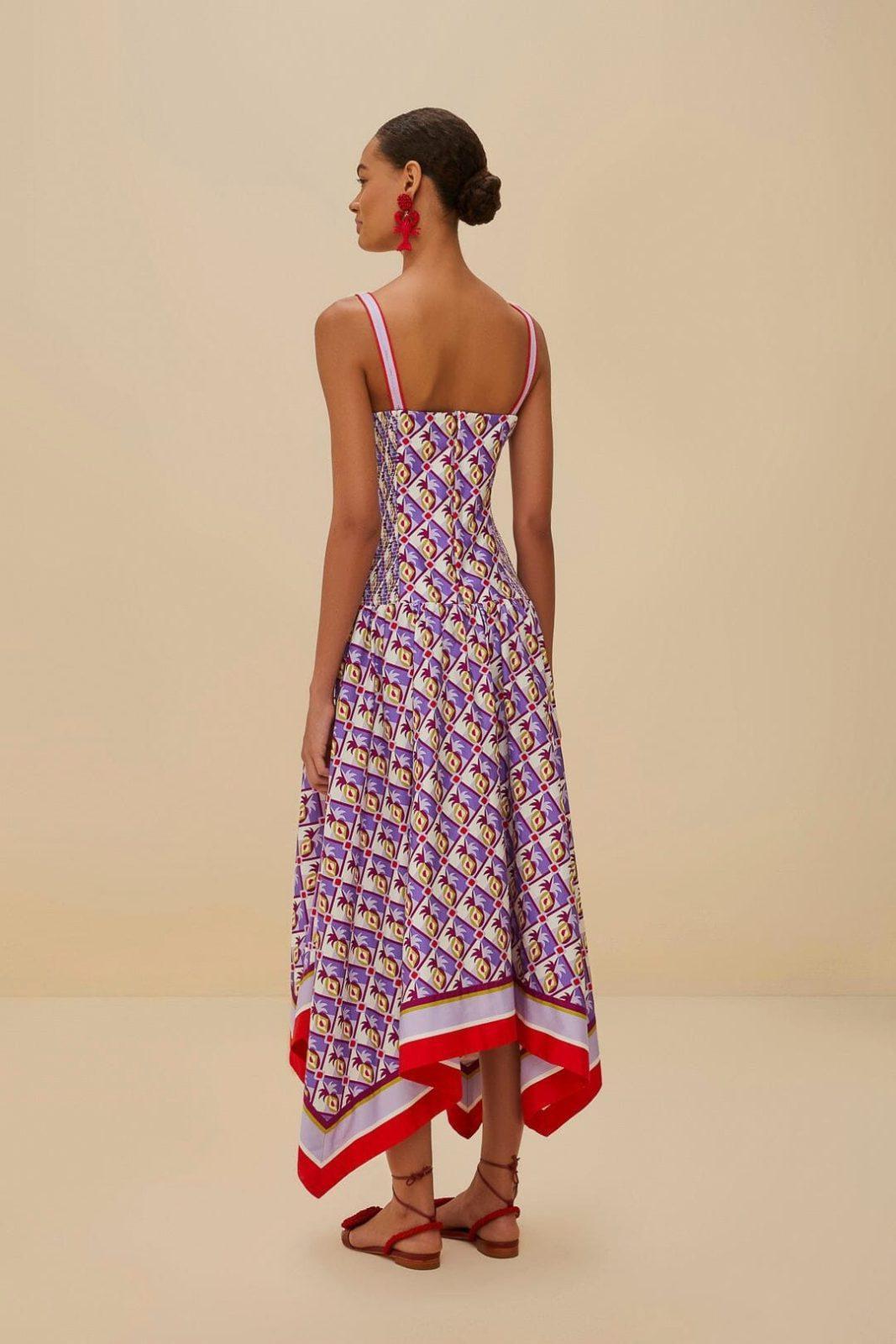 FARM RIO multicolor graphic pineapple scarf organic cotton midi dress