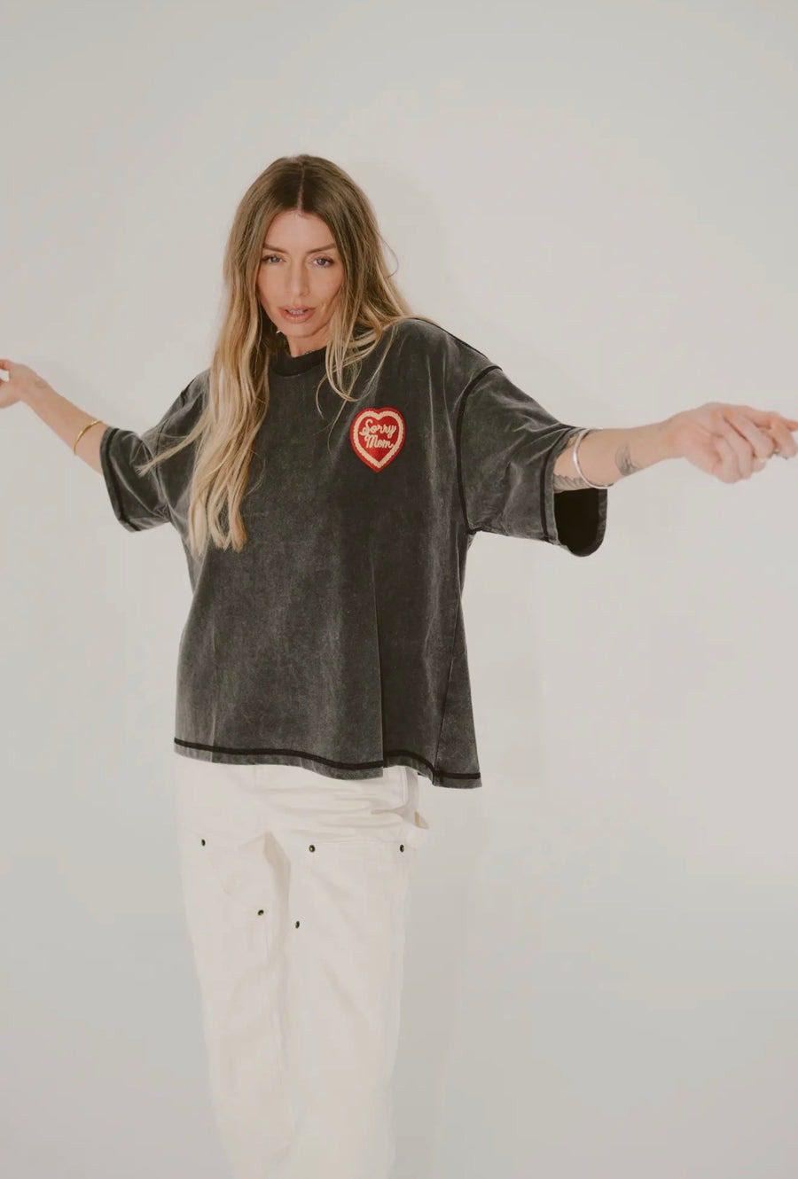 Left chest: “Sorry Mom” heart patch