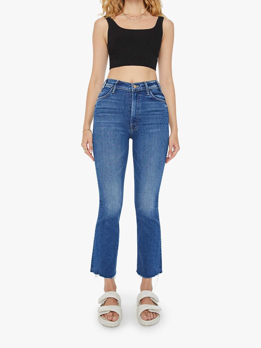 This bestselling high-rise flare has an ankle-length inseam and a raw hem. Cut from stretch denim, Grasping At Straws Us is a medium blue wash with subtle fading and whiskering.