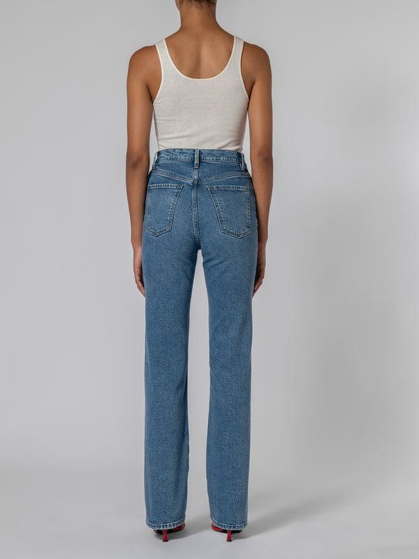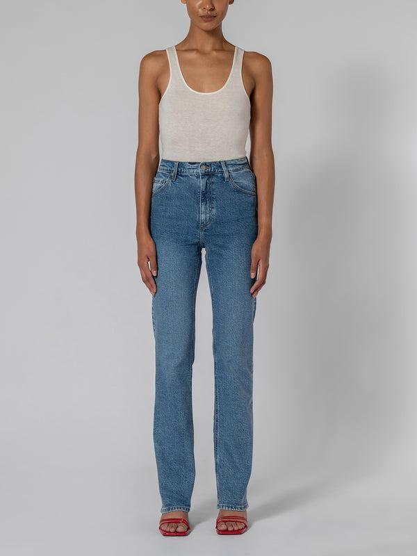 Our subtle bootcut jean. The Loretta Jean sits high on the true waist, is fitted through the hip and falls straight to the knee with a subtle bootcut designed to fall over your shoe. Crafted from premium comfort stretch denim.