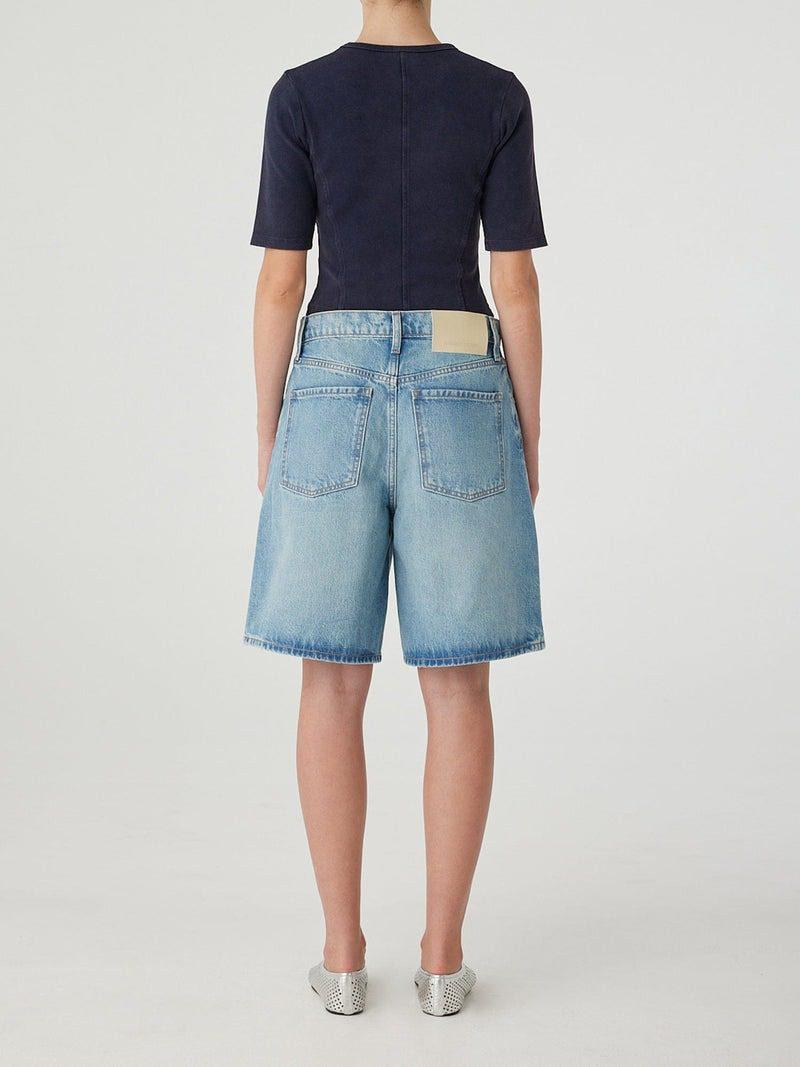 Our refined long line short. The Rowan Short sits just below the true waist, is relaxed throughout with an A-Line silhouette and finishes above the knee. Crafted from premium rigid denim.