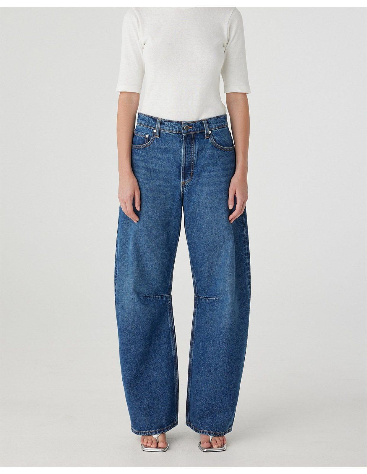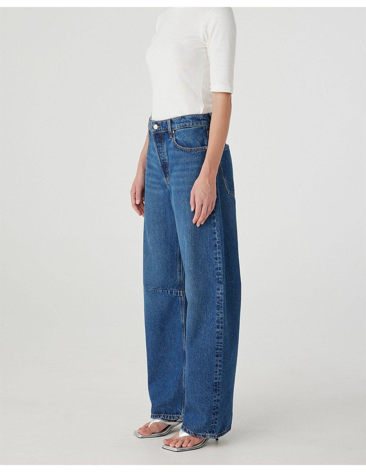 Nobody Denim’s bow-legged Jeans. The Vera Jean sits just above the navel, is relaxed through the hip and leg, with a bow leg profile and finishes at the top of the shoe. Features a knee dart, Crafted from premium rigid denim.