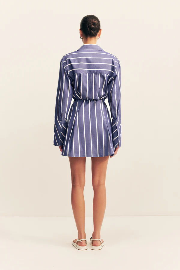 Long sleeve shirt mini dress in chambray blanc in a premium striped cotton.