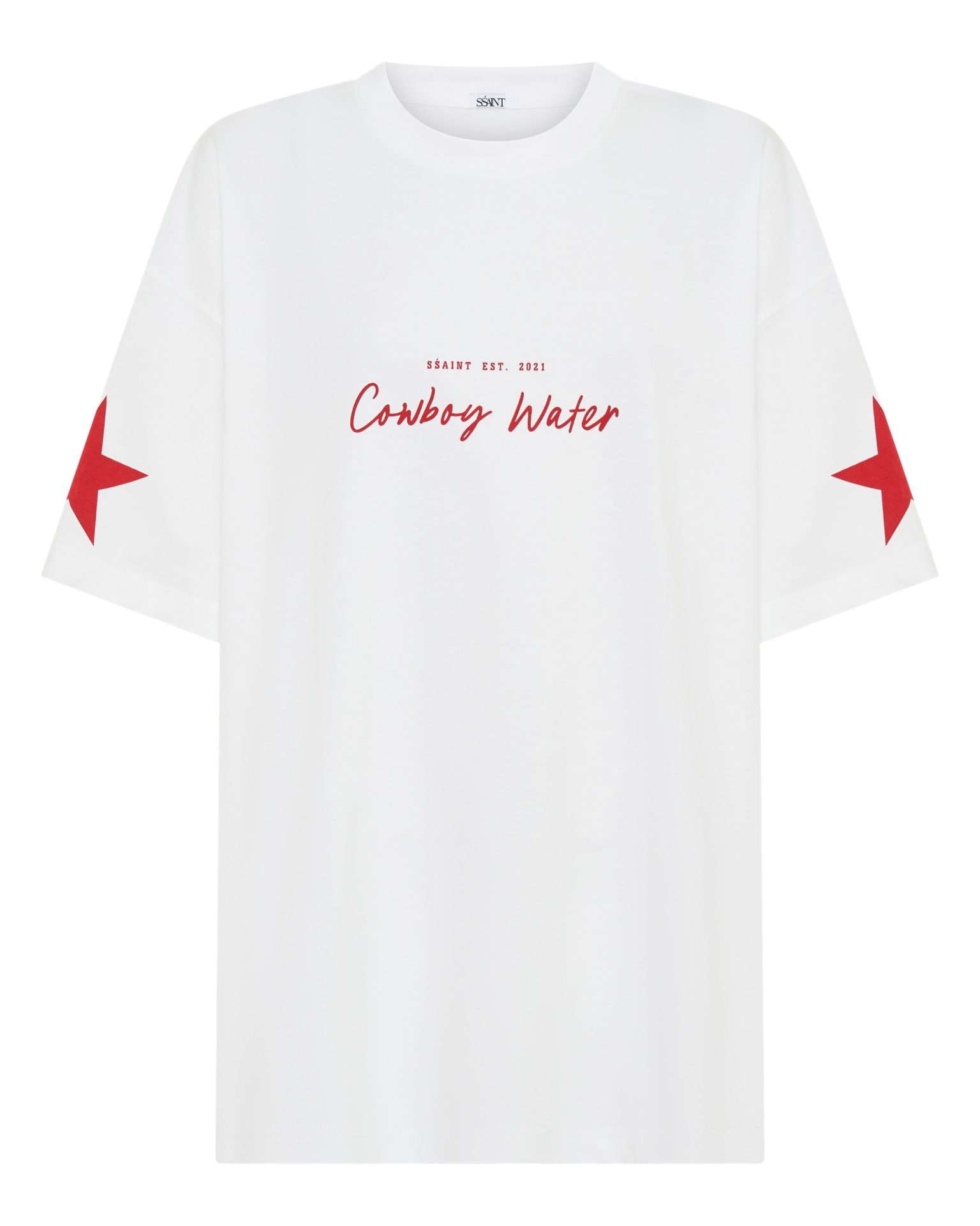 Embrace the Wild West with the Cowboy Water Tee. Inspired by our bestselling fragrance, this unisex tee features a bold white and red Cowboy Water logo, stars on the sleeves, and the embroidered slogan “Keep Hydrated in the Wild West” stitched in vibrant red on the collar. Rugged, stylish, and effortlessly iconic.