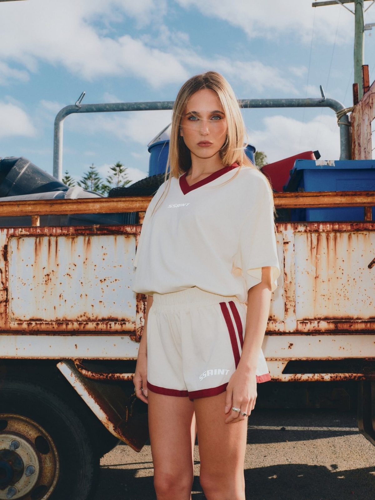 Cut with a clean V-neckline and contrast collar, this long sleeve tee is a nod to classic sportswear with a modern edge. Finished with the SŚAINT silver reflective logo, it’s equal parts statement and staple.