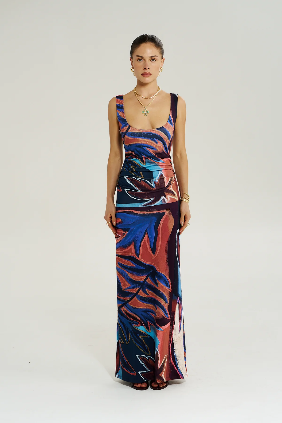 A longer iteration of a signature silhouette, offering fluid movement and a flattering shape. The rich tones adds sophistication to an easy-wear piece. Perfect for weddings, evening dinners, or special occasions.