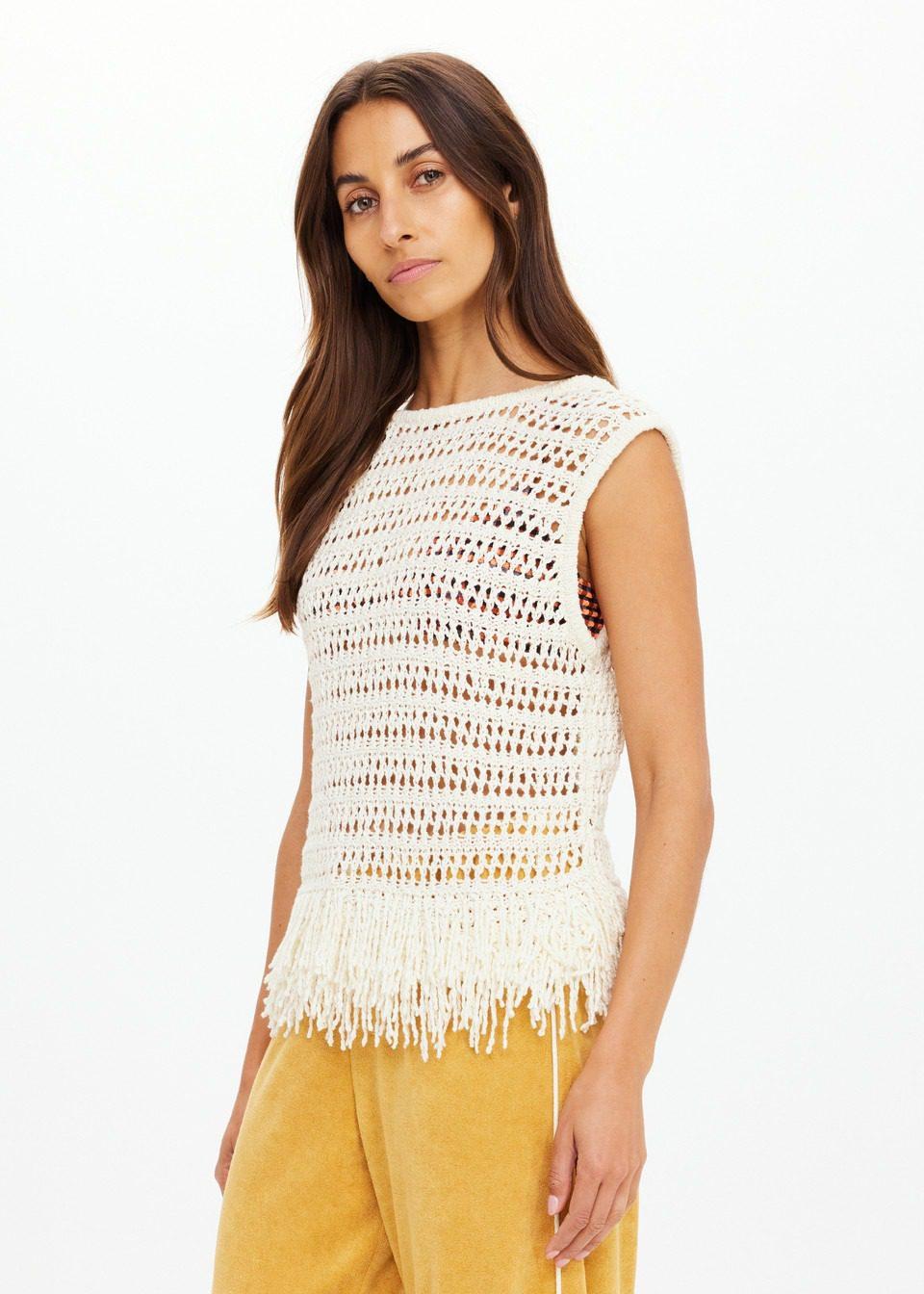 THE UPSIDE KAMALI KNIT FRINGE TOP CREAM