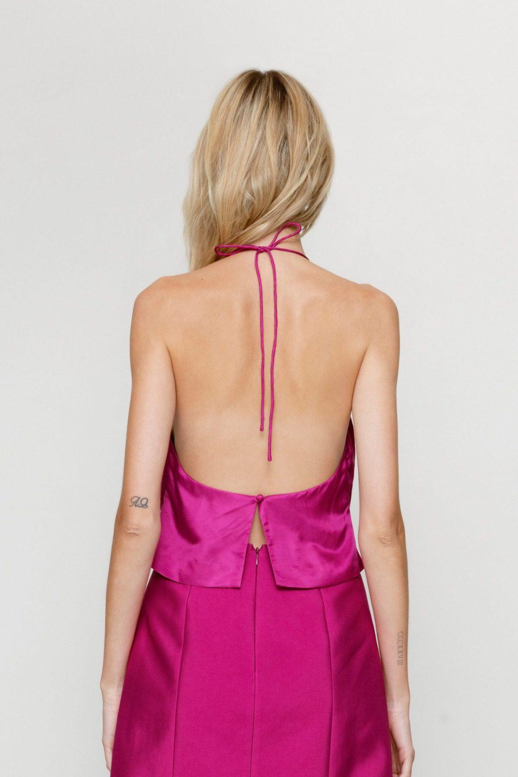 The Joyas Cowl Neck Top features delicate hand-beaded teardrop embellishments and a soft cowl neckline. An adjustable neck tie and button closure at the back offer an easy, custom fit. Style it with the matching Joyas Skirt for full impact, or team it with denim to elevate your everyday.